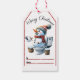 En liten julklapp visar en glad snögubbe som är klädd i en mysigt hatt och scarf, som lekt på en toalett och sprider helgdag glädje med en humoristisk tvist.