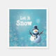 Låt det snöa 4,75x4.75 Papper koksvansnapkin. Sprickad snöflingor som faller på en blå luftbrusten bakgrund med söt snögubbe klädd i blått. Text kan redigeras.