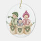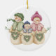 En familj i snögubbe med hjärtformade vågor på en porslinsfärgad ornament kommer säkert att glädja alla som kärlek snögubbar och vinter!