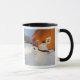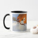 Snögubbe framför den röda ladan i Columbia Falls Mugg