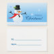 märkre i snögubbe med en söt snögubbe med röd halsduk och svart hatt mot en blekblå bakgrund, som njuter av vintersäsongen som snöflingor med olika former av behålla faller ner. Perfekt julklapp eller någon annan tillfälle. © Morgon 6