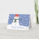 Snögubbe med rödhatt och grönt scarf, stora snöflingor Glad helg