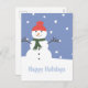 Snögubbe med rödhatt och grönt scarf, stora snöflingor Glad helg