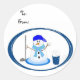 Ett litet snögubbe redo med sin golfklubb för att slå golfbanan.