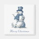 vattenfärgsmålning av ett vackert dekorerat snögubbe i Delft Blue färg