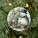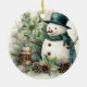 Snögubbe i en Grönt Hat-jul Julgransprydnad Keramik