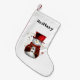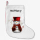 Jullagret har ett sött snögubbe i ett djupt rött sammetslandskap och top hat. Namn är anpassadet.