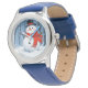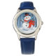 Snögubbe i kall-skog med röd halsduk armbandsur