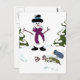 En scen i roligt snö med lite snögubbe i skogen med lite blå fågel tittar vid några gräs-kuber.