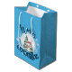 Cute snögubbe i en snö-glob med snöflingor på akvblått underlag. Bakgrunden till färg kan ändras.