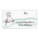 Snögubbe-kocken bär hatt och serverar en tallrik snowbollar på detta "från köket av" jul till från dekal eller "homemade by"-etikett för att kasta din lista med hemmade mat, godis och mattor.