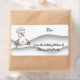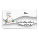 Snögubbe-kocken bär hatt och serverar en tallrik snowbollar på detta "från köket av" jul till klistermärke eller etikett för att klämma upp din lista med hemgjord mat, godis och mattor.