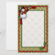 Snygg jul i Land med Snögubbe i sin matta. Bakgrunden är grönt och guld och ljusröda accenter. En djup mörk med löv ligger bakom snögubbe. Holly rusade på motsatt hörn. Centreringsområdet textureras lätt med vitt snöflingor.