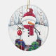 Snögubbe med gåvor i vaskfärg julgransprydnad keramik