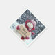 Ett glatt snögubbe, med röda öron, lock och motsvarande scarf, har ett tecken som lyder "God jul" i en snöbakgrund