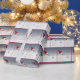 Cute snögubbe med röd sjalk och hatt med en guld-julstjärna för gamla gräs träd i vinterskogen.