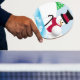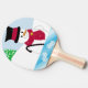 En vinterdesign med roligt som visar att ett viskigt snögubbe går med en käpp på snöbakgrund.