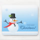 Snögubbe-musmattan med ett sött snögubbe med röd halsduk och svart hatt mot en blekblå bakgrund, som njuter av vintersäsongen som snöflingor med olika former av behålla faller ner. Perfekt julklapp eller någon annan tillfälle. © Morgon 6