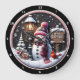 Gå in i ett charmerande vinterland med den här trevliga julväggskuren, designad för att ge dig feg värme till din hemskår. Den svarta klockan ansikte ger en slående bakgrund för ett snögubbe i lycklig, försedd med en livfull röd halsduk, som stolt står bredvid ett klassiskt lampa. Fintvätt av snöflingor i ett serensnöfall som skapar en mysigt och magisk frostig nattscen. Denna dekorativa tidspunkt fångar julhelgens glädje och julstämningen Kväll. Ett vackert biet av väggkonst, dess vintage stil och munterhet gör den till en perfekt gåva, vilket ger en unik och konstnärlig beröring till vilket rum som helst under kallet.