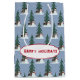 snögubbe och hjort i vinterskogen med snöflingor på ljusblå bakgrund. Bakgrunden till färg kan ändras. Text kan redigeras eller tas bort.