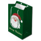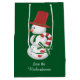 Den här söta jultomten och snögubbe-presentsäcken kommer att tillfredsställa barn i alla åldrar! På vägens framsida finns en söt tecknad porträtt i Jultomten, med den stiliserade texten i guld som säger "God jul". Baksidan av påsen (visas) har ett vidsträckt snögubbe som bär ett rött och vitt strippat candy cane som är bundet med en söt grönt båge. Vid grund finns två texter som fält för ert personliga budskap. Bilder och text placeras på mörkens helgdag grönt. Cute!