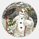 Snögubbe och Kråka Stickers Runt Klistermärke