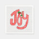 Cute snögubbe och red and white gingham JOY in roligt font stil on whitewzed wood bakgrund.