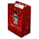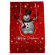 Cute lycklig snögubbe över mousserande röd bakgrund