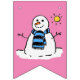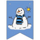 Snögubbe Design på julbuntning för att dekorera party. Roligt tecknad stil illustration av ett snögubbe på en solig vinterdag, upprepad över flaggor.