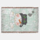 Den vackra julklappen har ett sött snögubbe i en svart top hat med en blå, blå och vit strimlad scarf på en blå helgdag med vitt snöflingor.