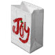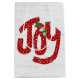 Cute snögubbe och röd och vit polka punkt JOY i roligt font stil på whitewzed wood with snöflingor.