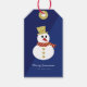 Snögubbe | Roligt Julblått och Guld Presentetikett