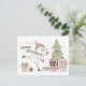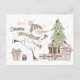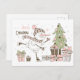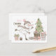 Snögubbe Skiing med Julgran och gåvor Vykort
