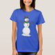 Ett snålt men kyligt tittar snögubbe bär en rödfläckad top hat och grönt scarf i detta vintridande illustration av Richard H. Fay.