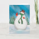 Snögubbe på natten, med röd kardinal; 5"x7" Julhälsningar kort (tomt inuti). Originalteckningar av Barbara J.C. Musch.
