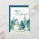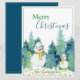 Snögubbar med vattenfärgsbakgrund i träd. "God jul" hälsning för din familj och dina vänner.