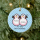 Snögubbear kopplar samman flickababy den första julgransprydnad keramik