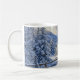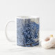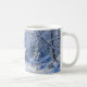 Snöig fjällstuga med rök och tallar målning kaffemugg