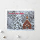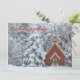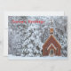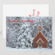 Snöig kyrka i vinterlandskap julkort