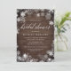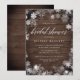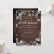 Elegant rustik vinter bröllopsinbjudan har en träplank bakgrund och en ram av isiga vita snöflingor. Anpassa med din bröllopsfest detaljer i chic vit bokstav. Ett vackert val för eleganta vinter bröllopsfester.