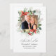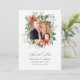 Den här förtrollande rädda datum-fotokortet har en akvarelldesign med snöiga tallar och granar, vackert accentuerad med järnek och röda bär, som frammanar en drömsk vinter skoglig bröllopsfest. Perfekt för par som planerar en jul- eller högtidsfirad fest, fångar detta kort charm och elegans under säsongen. Med utrymme för att inkludera ditt favoritfoto, är detta kort ett minnesvärt och personligt sätt att tillkännage din stora dag med stil.