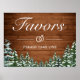 Bröllopsskylt. Rustik brun trä, snöande bakgrund och snöig skog. Mysig vintage lantlig stil. Fler föremål finns tillgängliga i denna stil i vår butik. Du kan redigera designen ytterligare, ändra färger, typsnitt och lägga till extra text genom att klicka på "anpassa ytterligare"-länken.