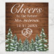 "Skål" bröllopsfest flasketikett. Rustik brun trä, snöig bakgrund och snöig skog. Mysig vintage lantlig stil. Fler föremål finns tillgängliga i denna stil i vår butik. Du kan redigera designen ytterligare, ändra färger, typsnitt och lägga till extra text genom att klicka på " Anpassa ytterligare "-länken.