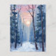 Snöig Skogsväg Vinter Solsken Akvarell Vykort