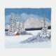 En tyst vinterscen som sträcker sig under en blek, silverfärgad himmel. Snötäckta berg sträcker sig i fjärran, med toppar mjuka av drivande moln.
