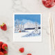 En tyst vinterscen som sträcker sig under en blek, silverfärgad himmel. Snötäckta berg sträcker sig i fjärran, med toppar mjuka av drivande moln.