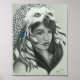 En underbar skrift av en inuitkvinna som bär en Ukpik (snowy uggla) huvudklänning, dragen med grafit och kol.