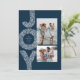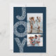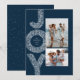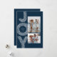 En festlig fladdrande GLÄDJE inramar två foton på detta unika julkort. Perfekt för att skicka högtidliga hälsningar till familj och vänner, har den ett vertikalt och ett horisontellt foto på en klassisk marinblå bakgrund. Baksidan av kortet är en matchande blå prickig med ett koordinerande vitt snömönster.