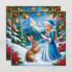 Snöjungfru i vinterscen med kanin julkort