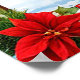 En magisk vinterlandskap med en Snöjungfru iklädd blå klänning som interagerar med en hjort. Snötäckta berg och festliga dekorationer förstärker den säsongsbetonade och fridfulla atmosfären.